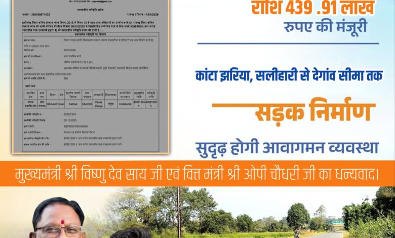 तमनार विकासखंड अंतर्गत कांटाझरिया–सलीहरी से देवगांव सीमा तक सड़क मार्ग स्वीकृत होने से क्षेत्रवासियों में खुशी की लहर है। वर्षों से कच्चे मार्ग के कारण ग्रामीणों को आवागमन में भारी परेशानियों का सामना करना पड़ रहा था। अब सड़क निर्माण की स्वीकृति मिलने से लोगों को राहत मिलेगी और क्षेत्र के विकास को नई गति मिलेगी।