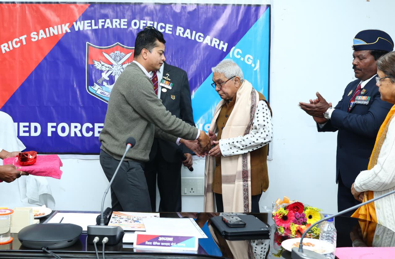 रायगढ़, 14 जनवरी 2026। कलेक्टर श्री मयंक चतुर्वेदी की अध्यक्षता में आज कलेक्टोरेट के सभाकक्ष में 10वां सशस्त्र सेना भूतपूर्व सैनिक दिवस पूरे सम्मान, गौरव और राष्ट्रभक्ति के वातावरण में मनाया गया। कार्यक्रम का शुभारंभ छत्तीसगढ़ के अमर शहीदों को पुष्पांजलि अर्पित कर किया गया। सशस्त्र सेना पूर्व सैनिक दिवस हमारे लिए सेवारत सैनिकों, भूतपूर्व सैनिकों एवं उनके परिवारजनों के प्रति आदर व्यक्त करने के लिए एक अवसर है। इस दौरान शहीद कर्नल विप्लव त्रिपाठी के पिता श्री सुभाष त्रिपाठी एवं माता श्रीमती आशा त्रिपाठी को सम्मानित किया गया।