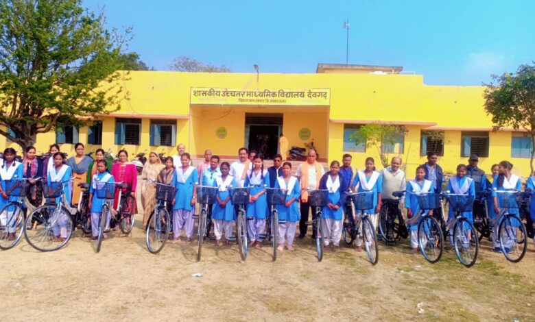 देवगढ़ हाई स्कूल में सरस्वती सायकल योजना के तहत छात्राओं को मिली सायकल