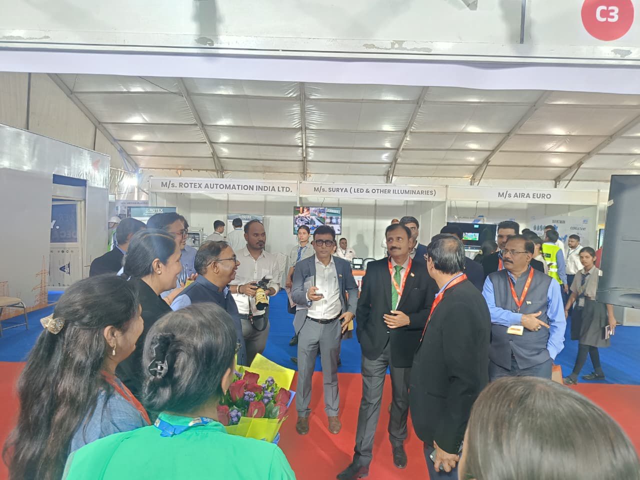 एडमिन परिसर में आयोजित टेक्नो काॅनक्लेव का निरीक्षण जिंदल पावर प्लांट तमनार के एमडी श्री प्रदीेप्तो कुमार मिश्रा और ईडी जी वेंकटरेड्डी ने किया। उनके साथ अन्य अधिकारी भी मौजूद थे। एमडी श्री मिश्रा और ईडी श्री वेंकटरेड्डी एक- एक स्टाॅल में गए और वहां की एक्टिविटि को जाना साथ ही आवश्यक दिशा निर्देश भी एमडी श्री मिश्रा ने संबंधित अधिकारियों को दिया।