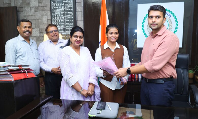 आज जिला कलेक्ट्रेट में कलेक्टर श्री मयंक चतुर्वेदी ने आद्यशा परिडा को अपने चेम्बर में आमंत्रित कर सम्मानित किया और उनकी इस उपलब्धि की सराहना की। इस अवसर पर कलेक्टर ने छात्रा के माता-पिता से भी मुलाकात कर उन्हें बधाई दी तथा उनके सहयोग और मार्गदर्शन की प्रशंसा की।